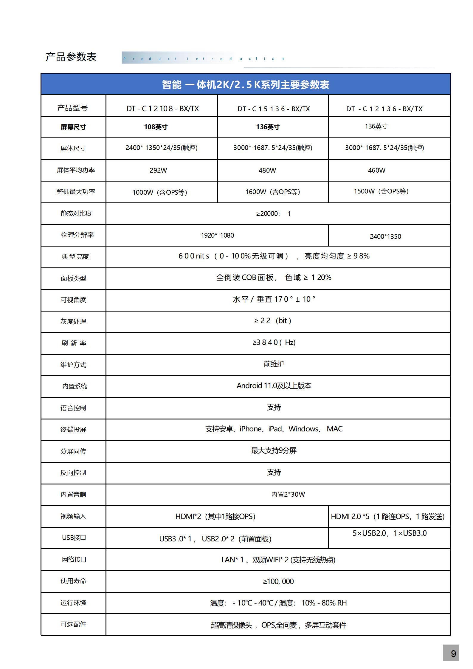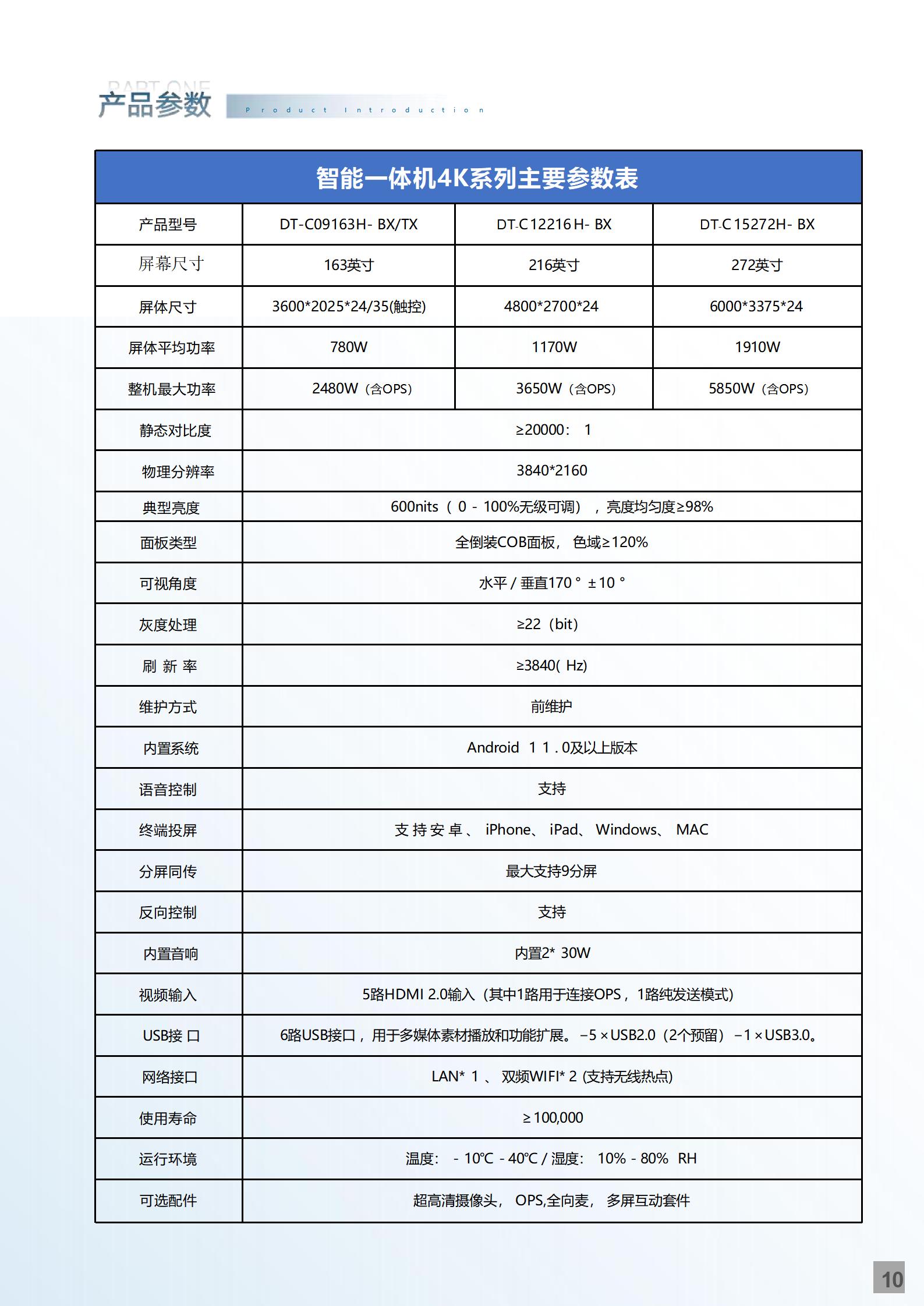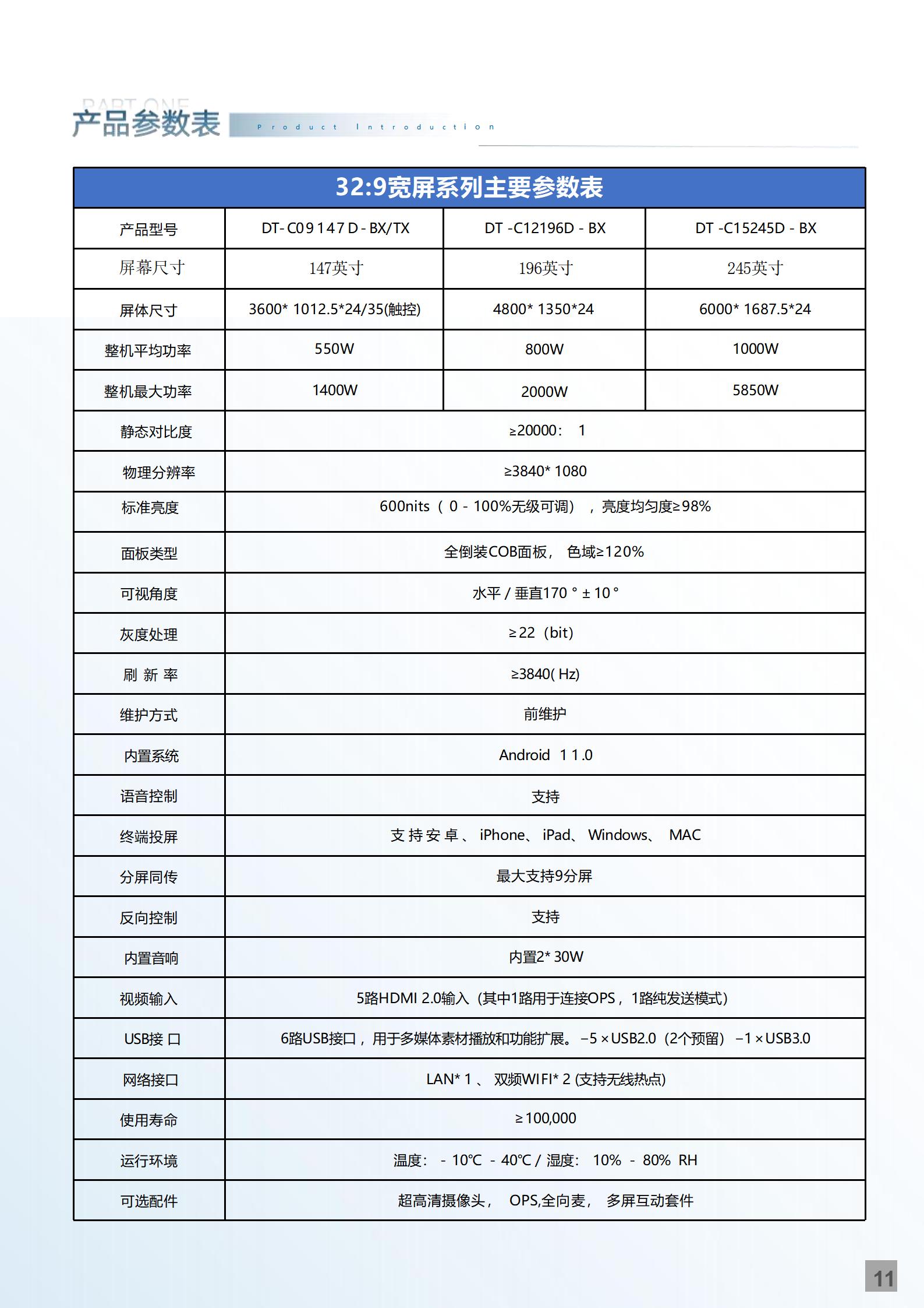 , 画质卓越 。 防撞 、防水 、防潮 、防静电 、防震 、防尘、 防火 、防盐雾 、防触电 、防雷击。多种尺寸选择、多种组合应用的设计 ,能满足不同的需求 ,轻松打造不伤眼的超高清会议方案。