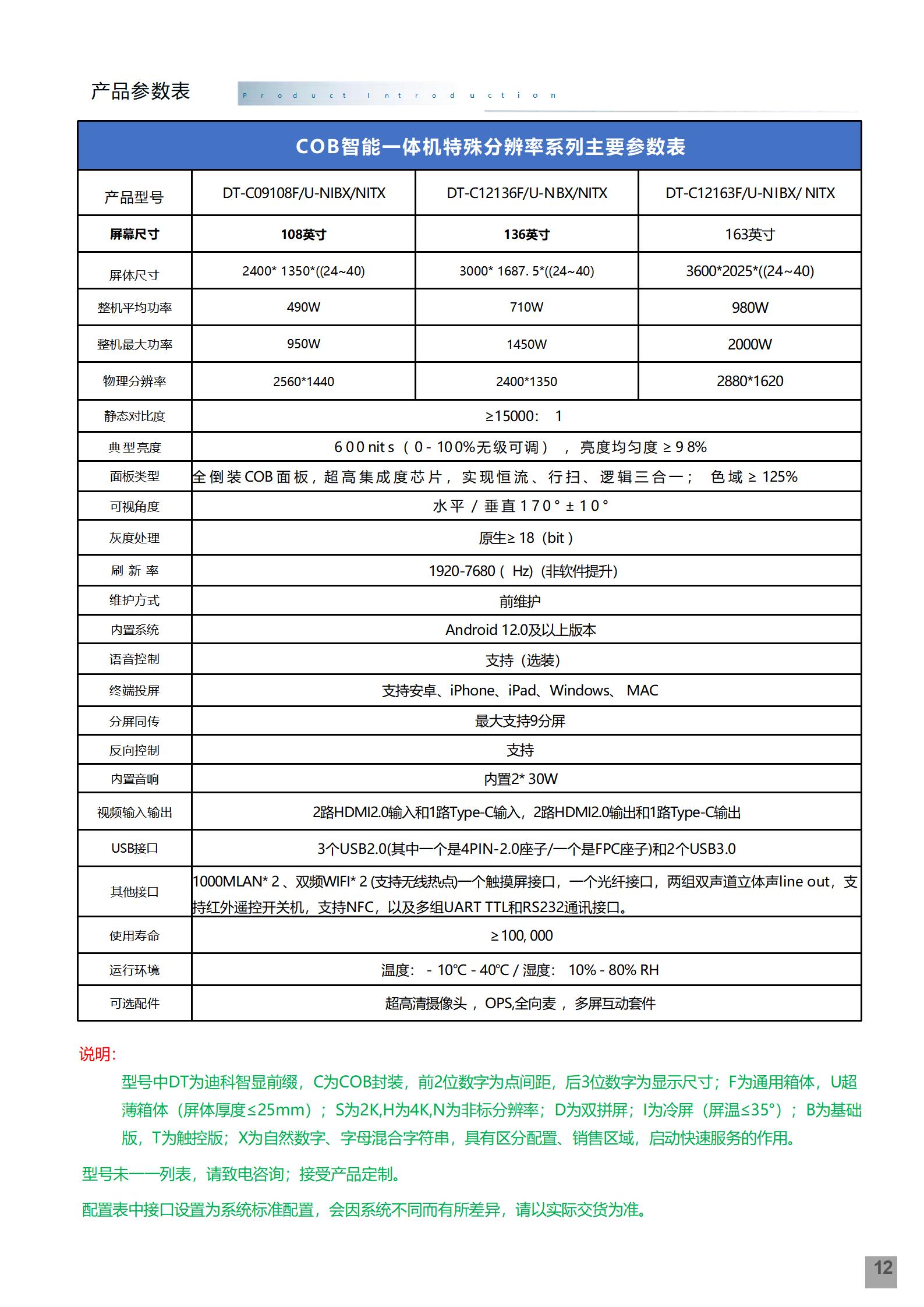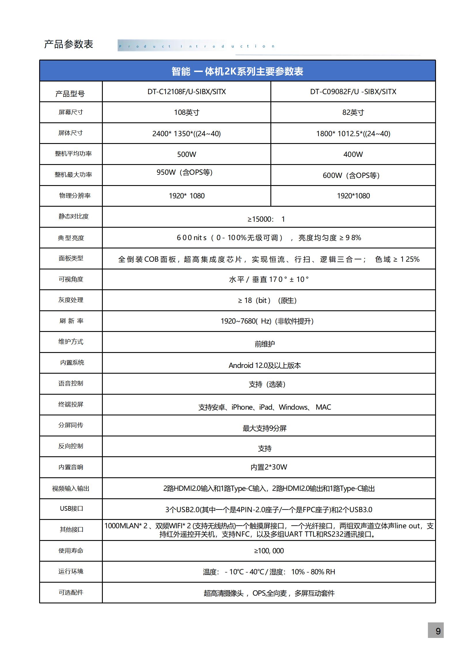 一体机显示面板采用全倒装COB封装技术 ,采用超高集成芯片:实现恒流、行扫、逻辑三合一,大幅降低驱动芯片使用量和电路结构;采用S-PWM技术:低功耗、节能更环保;数据传输模式: LVDS接口环通,数据直接写入,0延时。 结合高画质引擎, 迪科智能一体机拥有原生18bit以上颜色处理能力,能充分还原展现真实色彩。高亮度 、高对比度、宽色域, 画质卓越 。 防撞 、防水 、防潮 、防静电 、防震 、防尘、 防火 、防盐雾 、防触电 、防雷击。