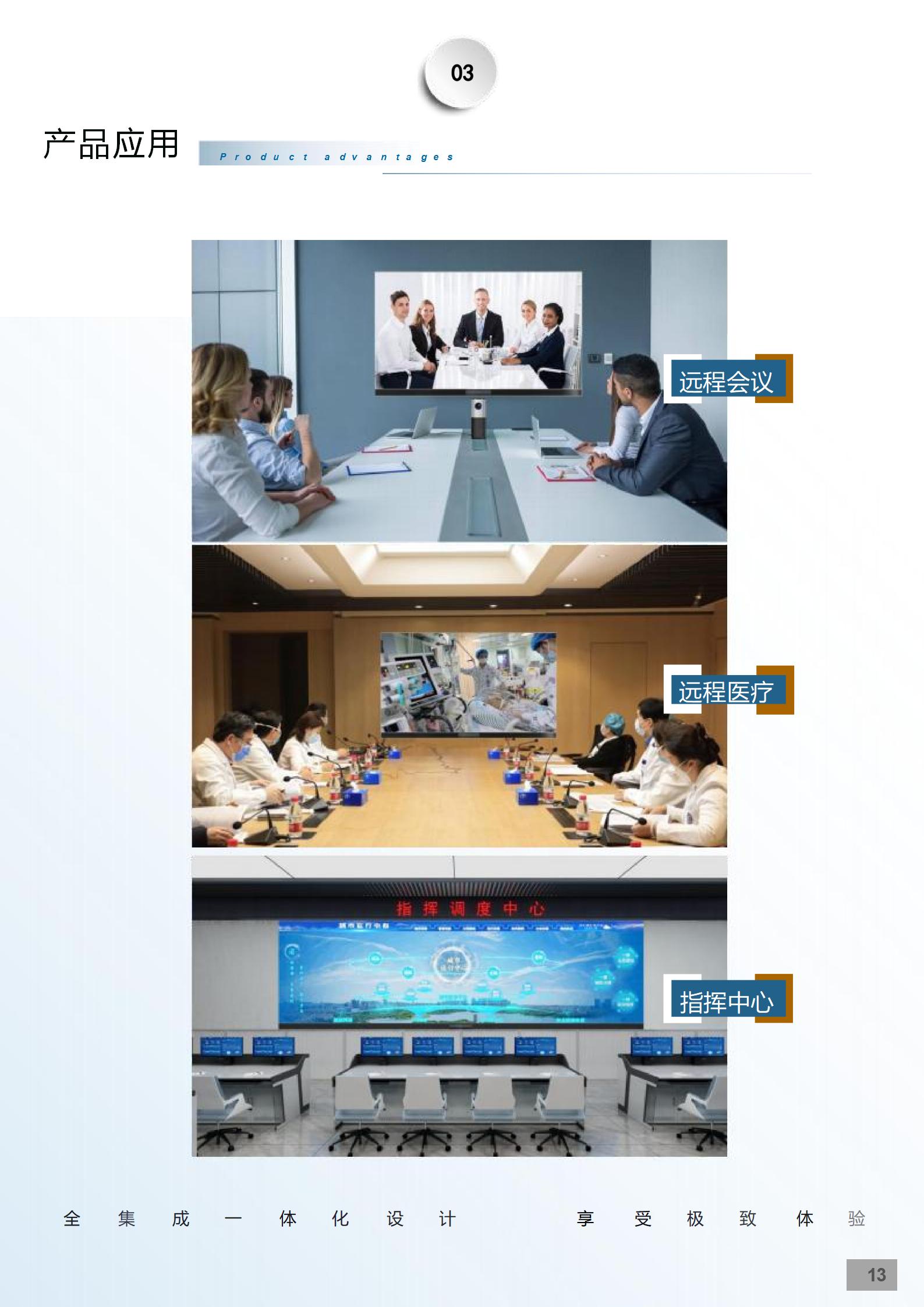 产品分为常规、超薄两大类,具有多种尺寸、多种功能组合应用选择 ,能满足各类不同的需求 ,轻松打造不伤眼的超高清会议方案,是超高要求方案的首选产品。