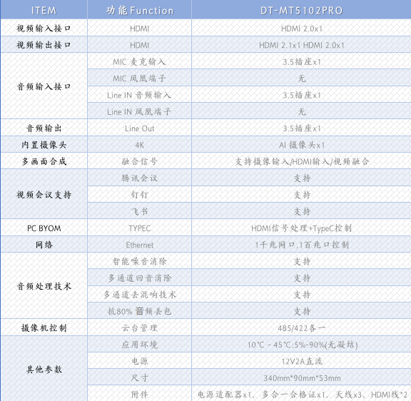 MT系列集成度极高。其凭借强大的软件系统,全面覆盖各类会议场景应用,并兼顾视频、音频处理的多样化需求。该系统深度整合繁琐的会议功能,打造极简会议应用平台。高度集成的设计简化了系统架构,同时赋予其卓越功能,这得益于更强劲的处理芯片及先进的音视频处理算法。迪科对软硬件平台的深度研发,使会议应用领域不仅功能强大、用户体验超群,且有效降低了用户成本,这一愿景现已成为现实。MT系列的推出,标志着迪科在AI会议终端产品领域迈出了重要一步。